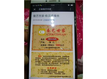 2.掃描后手機上顯示的圖片,是公司的極品桑蠶絲,全國統一零售價380元/斤。